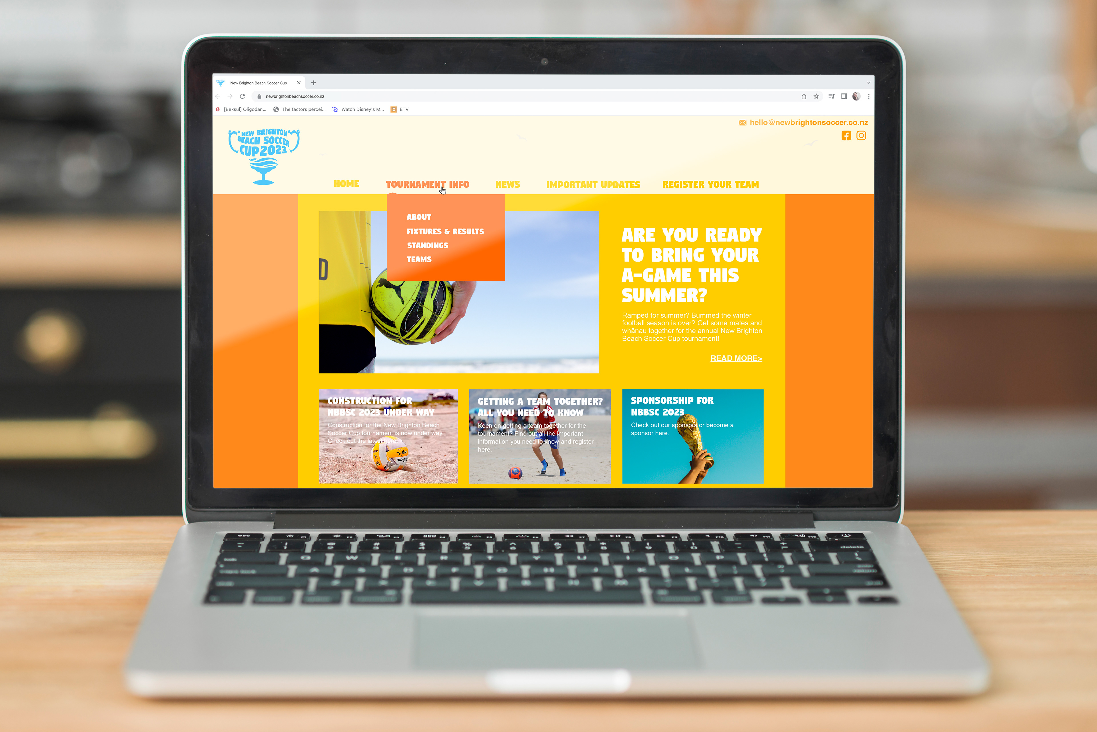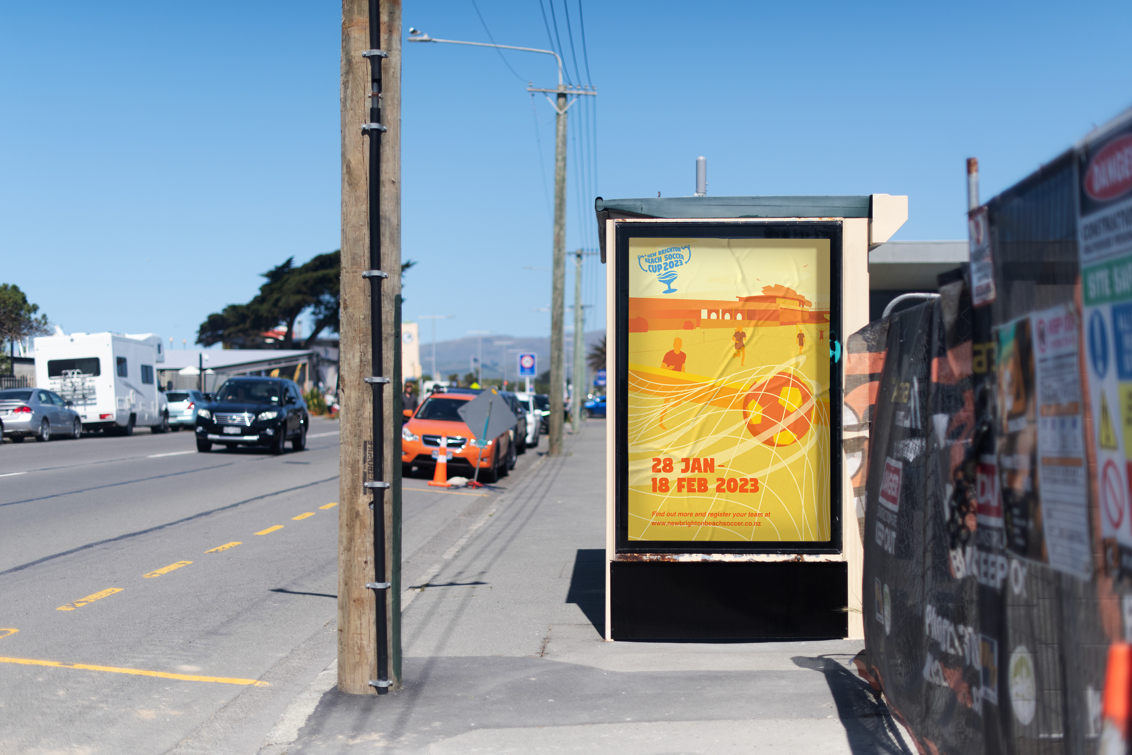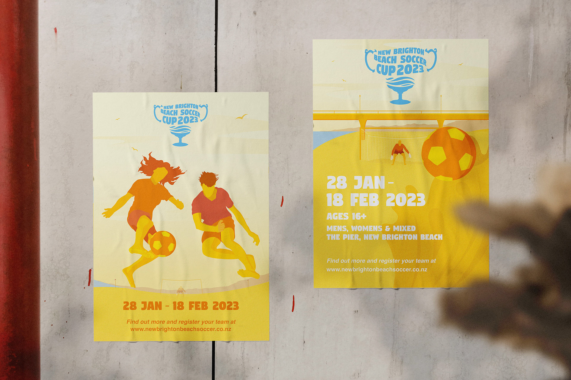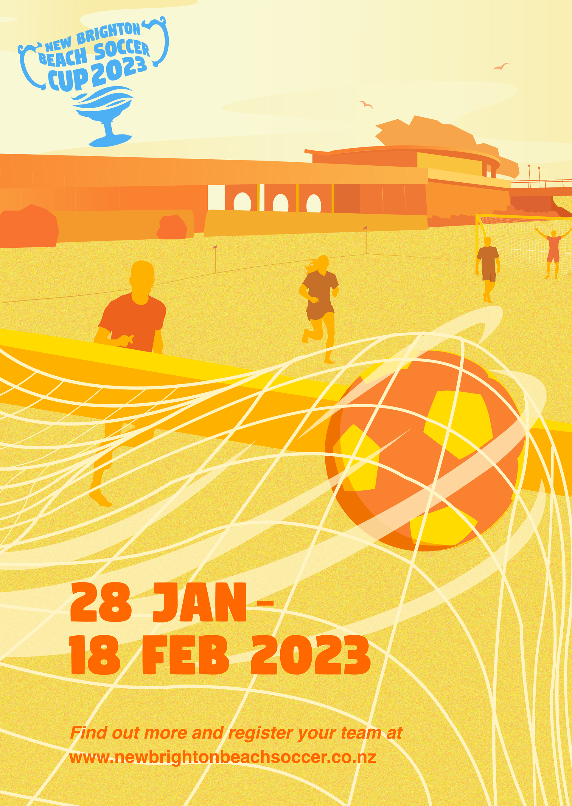 This mock campaign promotes a Summer beach soccer tournament at the popular and much loved Christchurch beach, New Brighton.